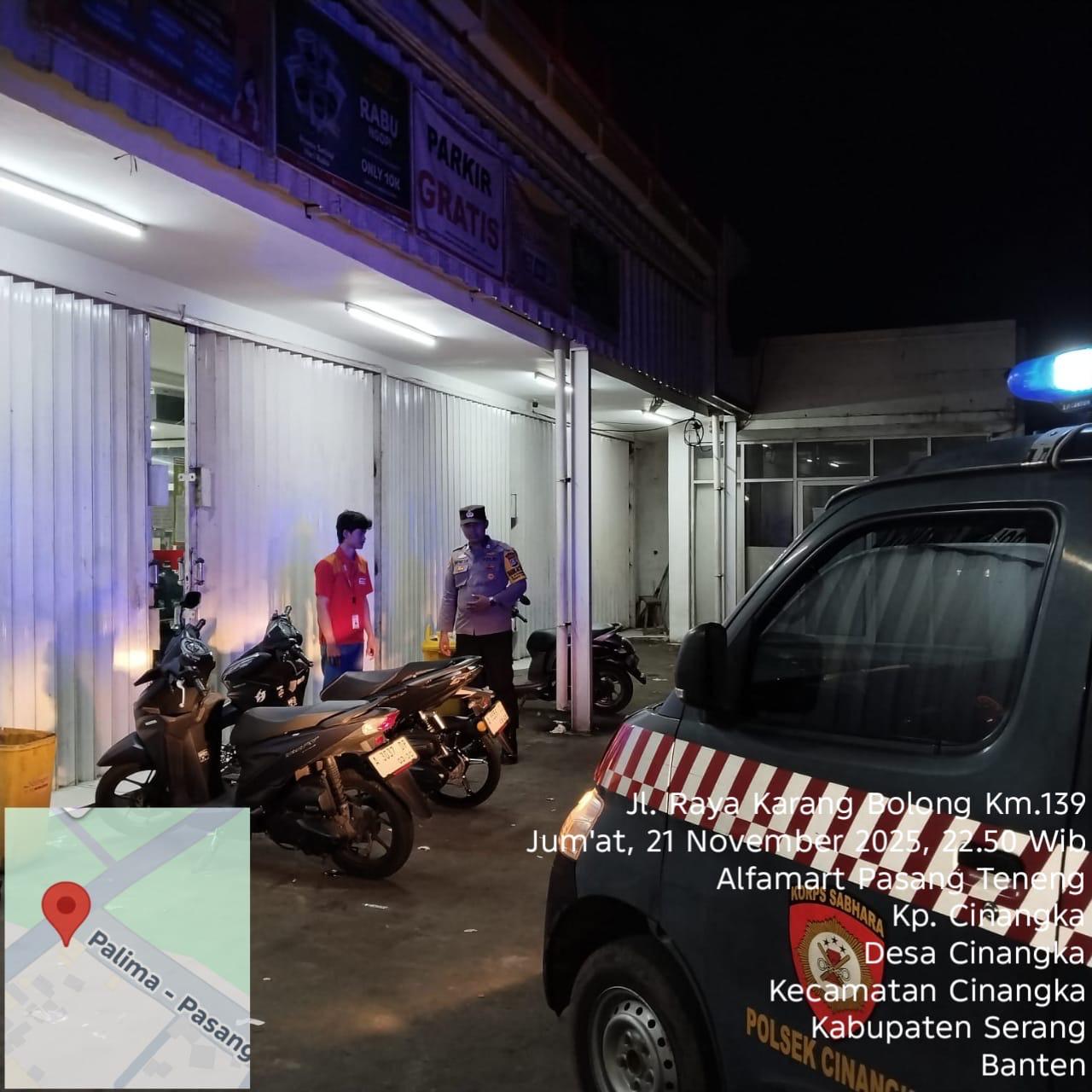 *Polres Cilegon* – Dalam Rangka Pencegahan Kejahatan Jalanan dan Memelihara situasi keamanan dan menjaga serta memberikan rasa aman dan nyaman di masyarakat,Salah satu upaya untuk mewujudkan hal tersebut sebagaimana yang dilakukan oleh Personil Polsek Cinangka Polres Cilegon Polda Banten melaksanakan giat patroli blue light malam hari hingga menjelang pagi, Sabtu (22/11/2025).