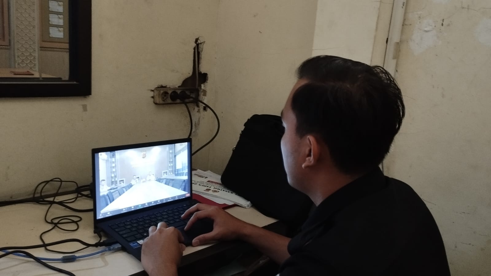 Anggota Tik Polres Cilegon Menyiapkan Sarana dan Prasarana Untuk Kegiatan Zoom meeting Dalam pelaksanaan kegiatan zoom meeting tersebut anggota TIK Polres Cilegon yang bertanggung jawab untuk menyiapkan peralatan zoom. Selain itu agar di tidak ada gangguan jaringan sebelum pelaksanaan anggota TIK melakukan pemeriksaan terhadap sarana dan prasarana tersebut . Satu jam sebelum kegiatan zoom meeting itu dimulai. Kapolres Cilegon AKBP. DR. MARTUA RAJA TARIPAR LAUT SILITONGA. melalui Kasi TIK IPTU Lukman menyampaikan bahwa “untuk menunjang kelancaran penyampaian informasi anggota TIk Polres Cilegon selalu memeriksa sarana dan prasarana tersebut, sebelum maupun pada saat pelaksanaan akan selalu di monitor