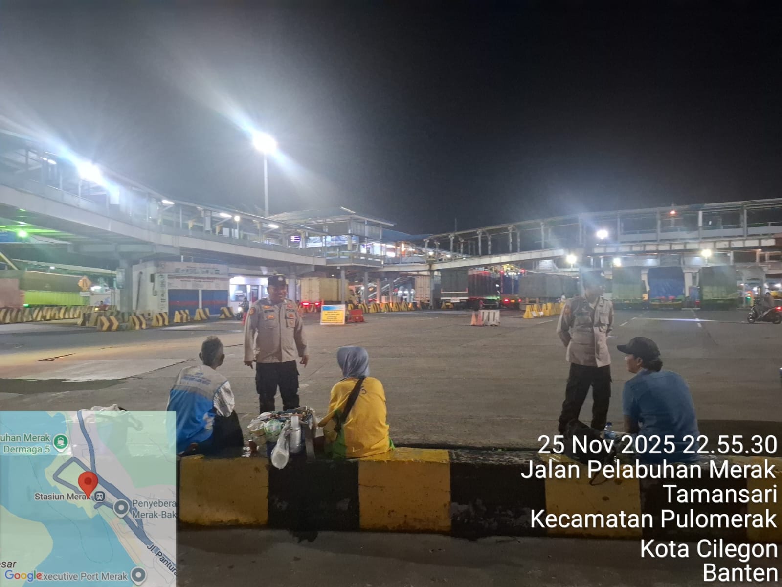 Cilegon - Personil Polsek Kskp Merak Polres Cilegon melaksanakan patroli di kawasan pelabuhan merak memberikan rasa aman dan damai, Rabu (26/11/2025)