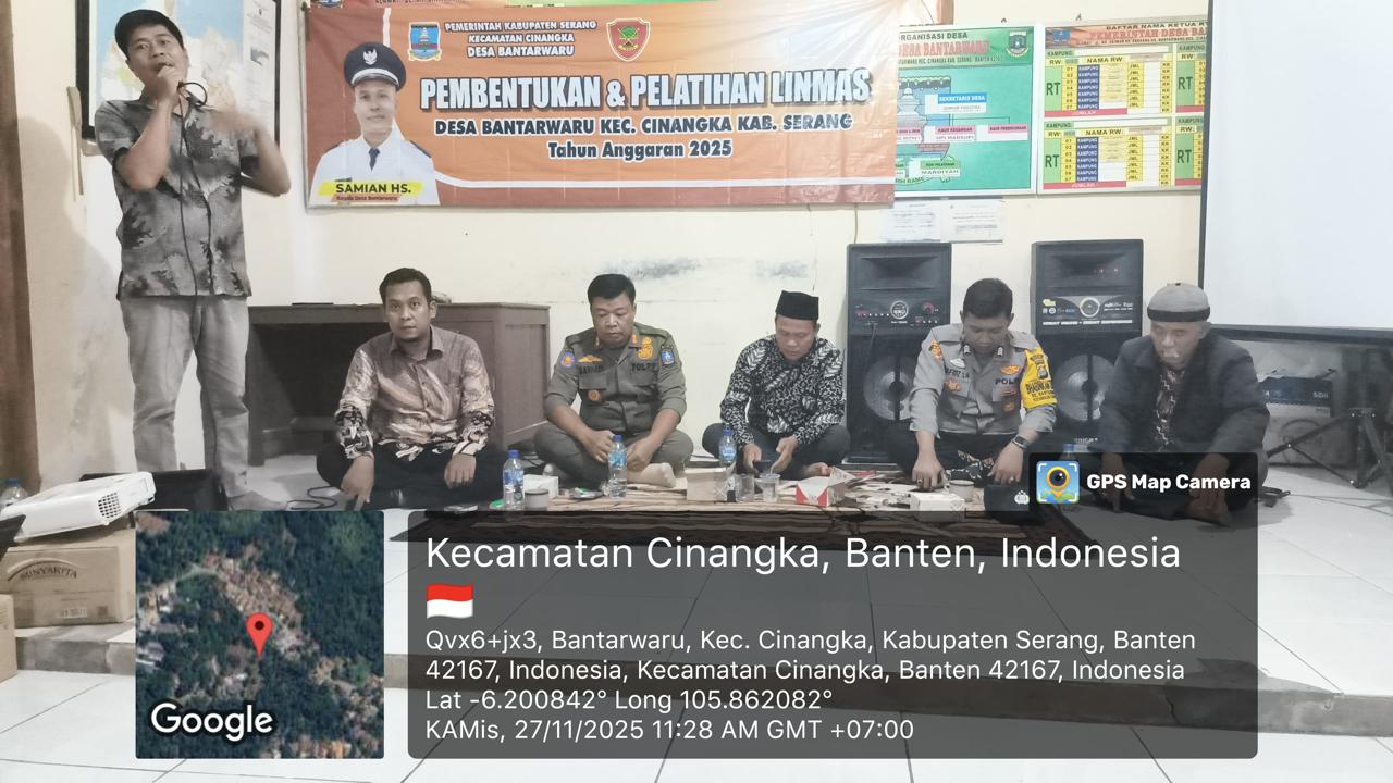 *CILEGON* dalam Rangka Mengantisipasi Gktm di wilayah Personil Bhabinkamtibmas Cinangka melakukan patroli Dialogis dengan Kepala Desa dan warga dan Menanyakan situasi Kamtibmas di wilayah dalam Rangka Menjaga Harkamtibmas di Desa Binaannya Kecamatan Cinangka Kab. Serang. Kamis (27/11/2025).