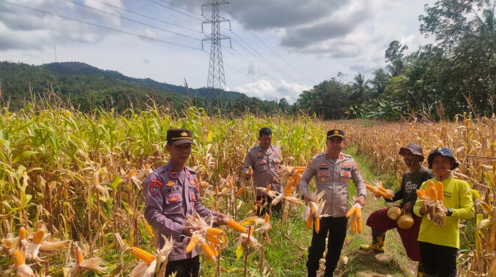 Polsek Anyar Bersama Poktan Melaksanakan Panen Jagung Di Desa Binaan