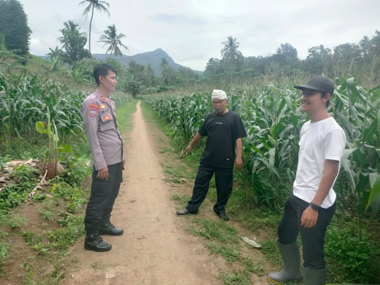 Dalam rangka mendukung program ketahanan pangan nasional dan swasembada pangan Kanit Binmas dan Bhabinkamtibmas Polsek Anyar melaksanakan kegiatan sambang dan monitoring lahan pertanian jagung di Desa Bunihara, Kecamatan Anyar, Kabupaten Serang. Sabtu (29/11)