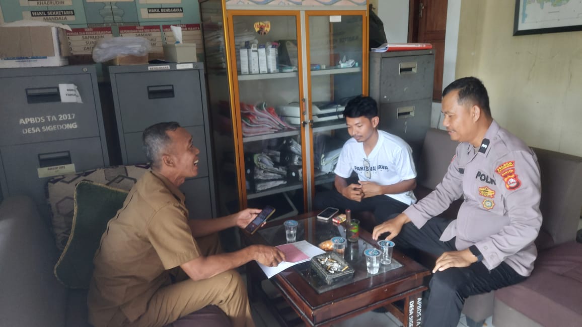 Kapolres Cilegon Polda Banten AKBP Dr. Martua Raja Taripar Laut Silitonga melalui Kapolsek Mancak IPTU KHAIRUL Dan Beserta Anggota Bhabinkamtibmas AIPDA EKO GUNAWAN SUPRIYADI. Melaksanakan giat sambang dan silatutahmi dengan staf desa sigedong dalam Rangka pelaksanaan giat program *Polres Cilegon Tranding* dan *Quick Wins Presisi* Di Polsek Mancak Sekaligus menghadirkan Polisi di tengah-tengah masyarakat.