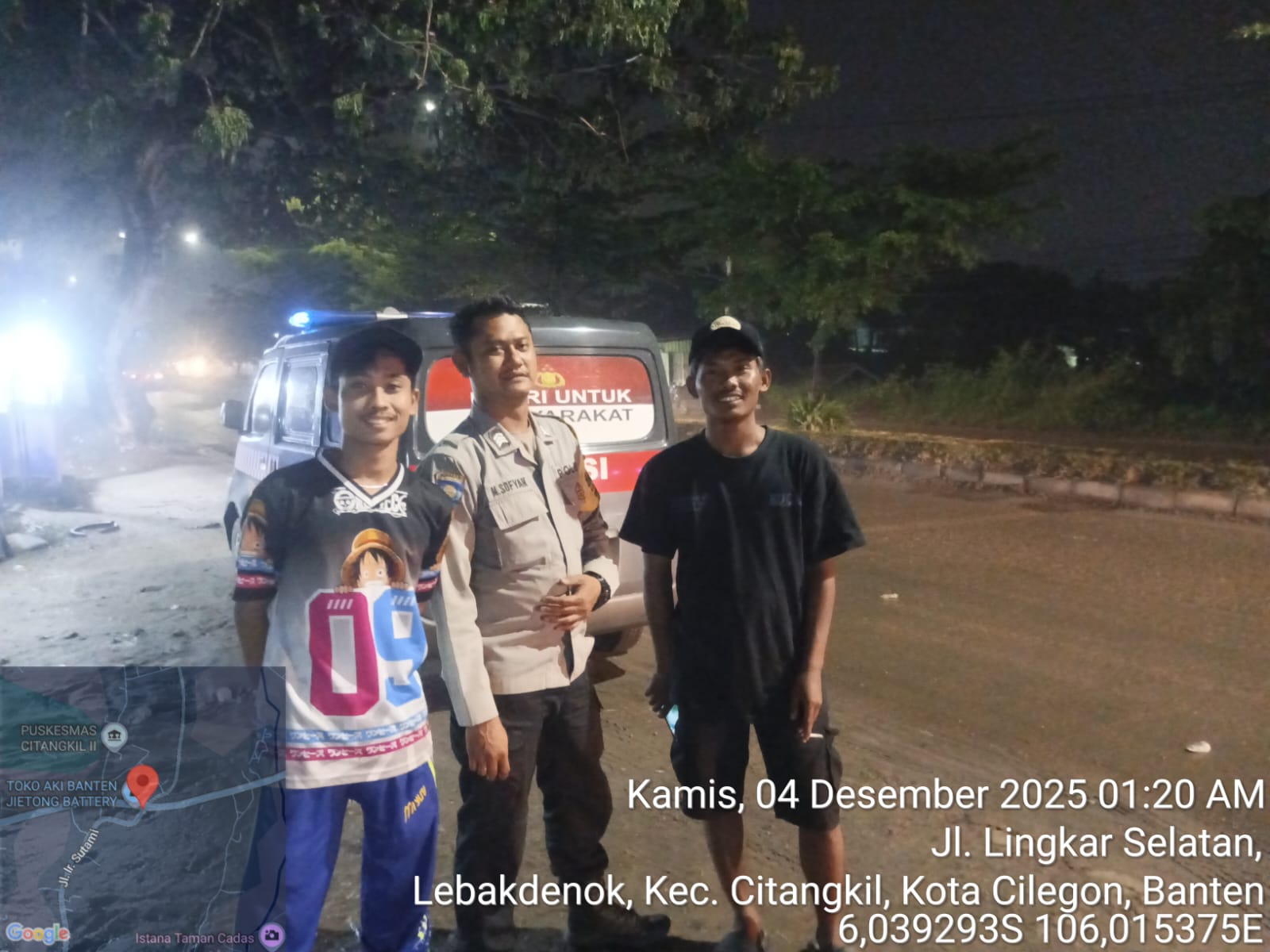 Cilegon - Personil Polsek Ciwandan Polres Cilegon Polda Banten memberikan himbauan kamtibmas dan motivasi kepada anak-anak Remaja Yang sedang Nongkrong Dipinggir Jalan Lingkungan Binaan, Kamis (04/12/2025).