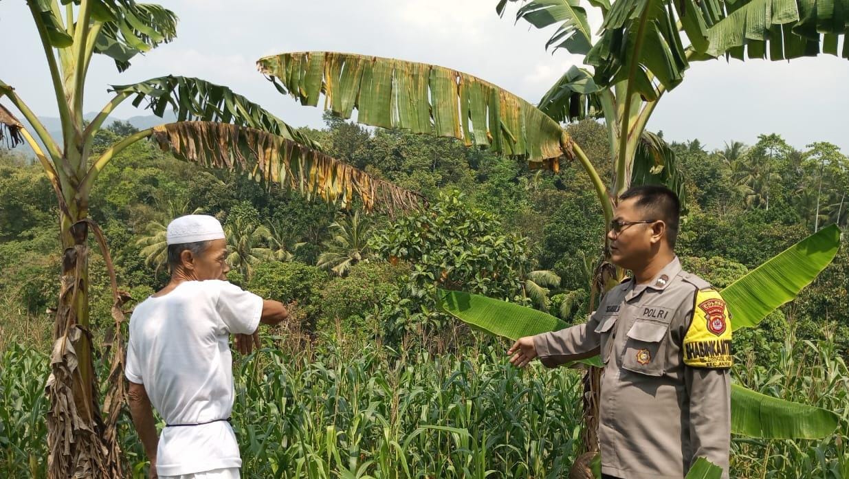 Personil Bhabinkamtibmas Polsek Anyar Cek Pertumbuhan Pada Tanaman Jagung