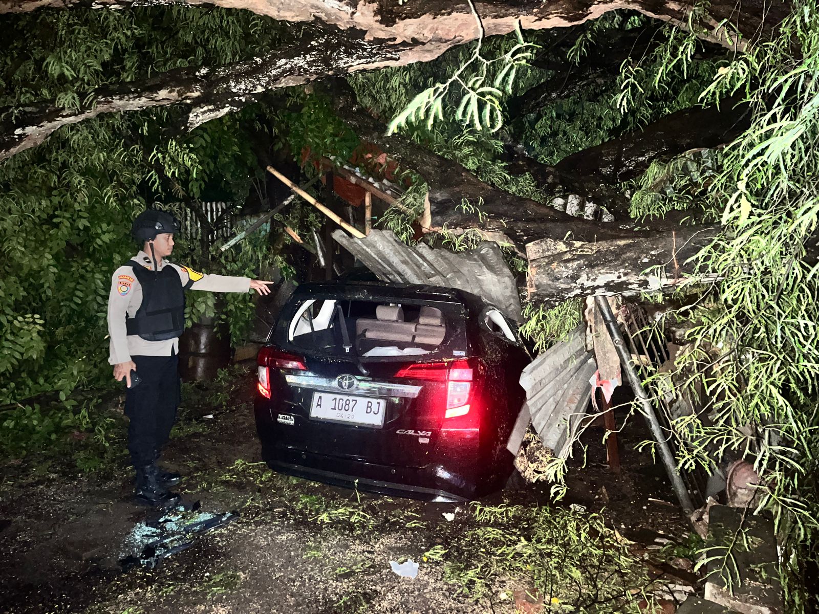 Peesonil Polsek Ciwandan Datangi TKP Mobil Tertimpa Pohon