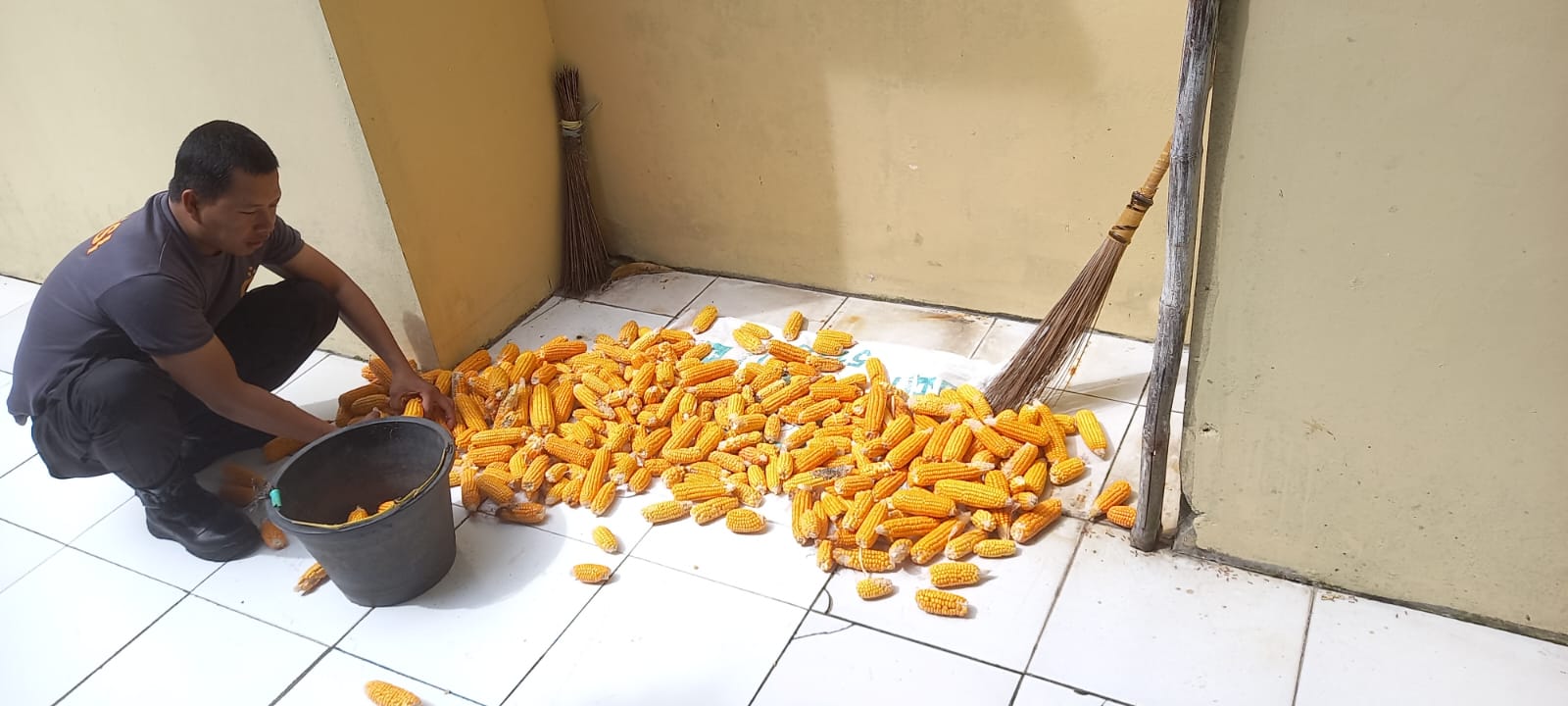 Personil Bhabinkamtibmas Polsek Purwakarta Bantu Jemur Jagung Warga Kelurahan Kotabumi