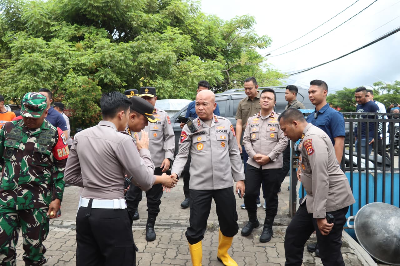 Usai meninjau dapur umum, Kapolda Banten melanjutkan pengecekan ke lokasi banjir di Lingkungan Sambirata RT 005/003, Kelurahan Cibeber, Kecamatan Cibeber. Di lokasi tersebut, Kapolda melihat langsung kondisi pemukiman warga yang terdampak banjir sekaligus menyerahkan bantuan makanan kepada masyarakat sebagai bentuk empati dan dukungan moril.