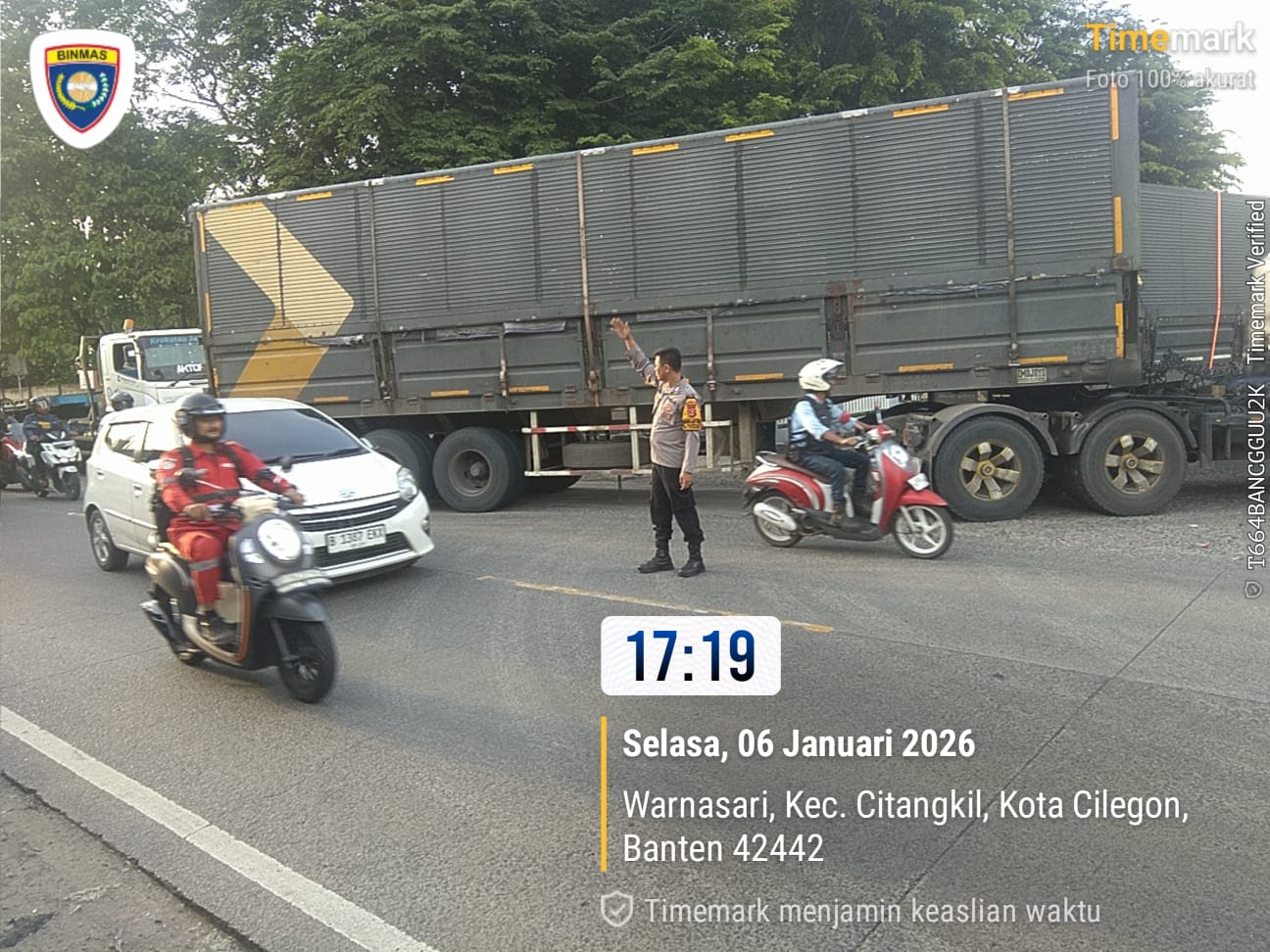 Cilegon – Berikan Pelayanan Kepada Masyarakat Personil Polsek Ciwandan Polres Cilegon Polda Banten melaksanakan pengaturan di titik kepadatan Arus Lalu-lintas Yang Ada Di daerah Hukum Polsek Ciwandan, Rabu (07/01/2026).