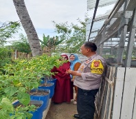Anggota binmas polres Cilegon melaksanakan kegiatan panen jagung