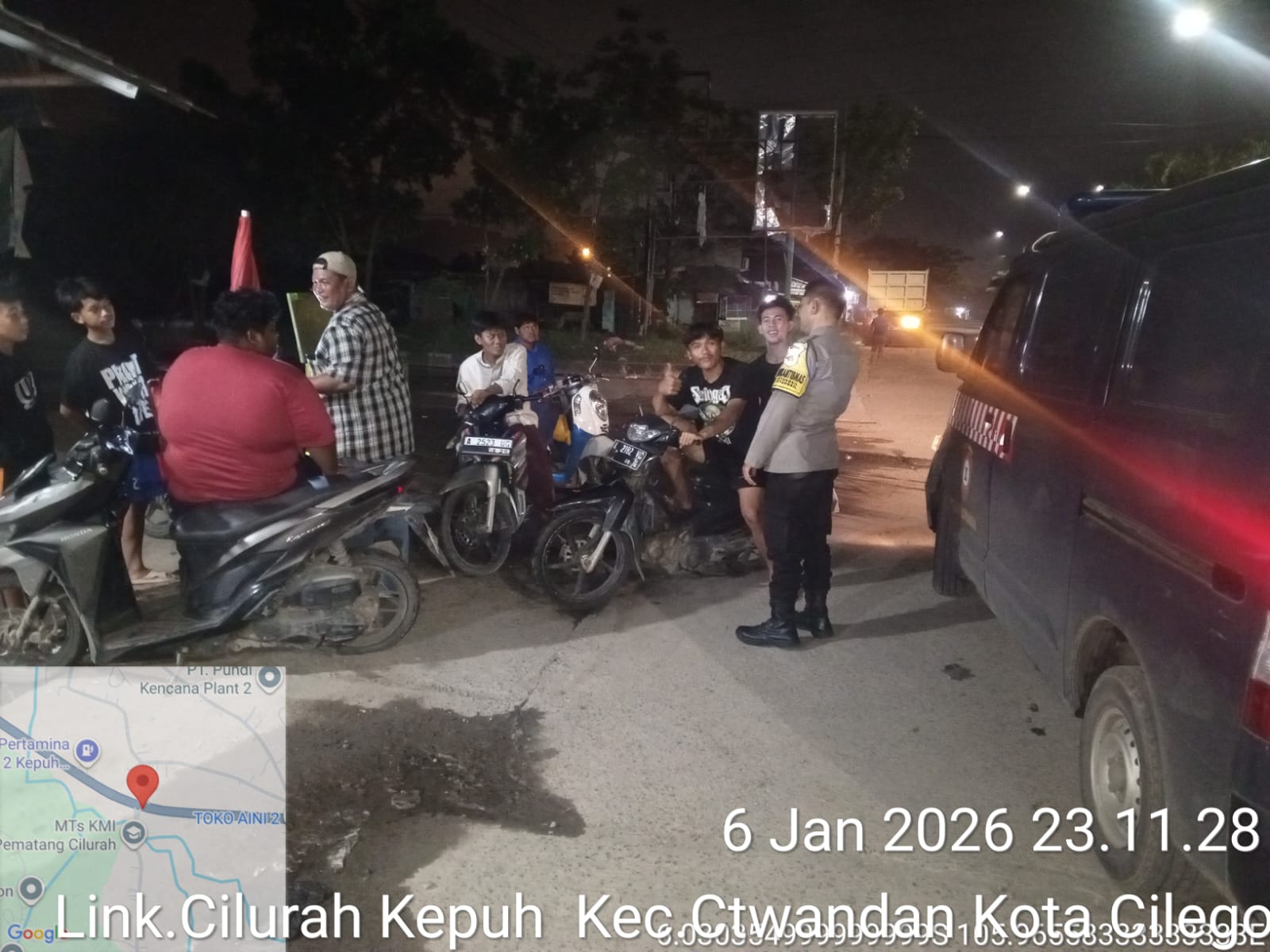Dalam Hal ini Personil Polsek Ciwandan Polres Cilegon Polda Banten melakukan patroli malam menggunakan kendaraan patroli menyusuri jalur utama dan perumahan penduduk, sebagai langkah untuk mencegah gangguan keamanan yang beragam yaitu pencurian ternak (curnak), pencurian kendaraan bermotor (curanmor) maupun kejahatan lainnya.