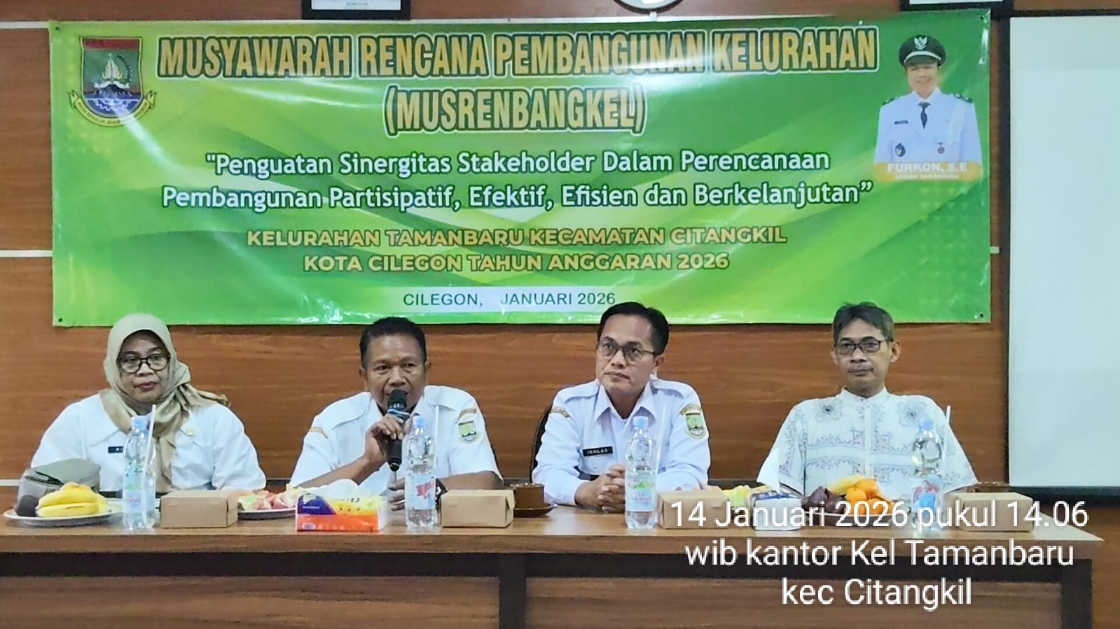 Cilegon – Bhabinkamtibmas Kelurahan Tamanbaru Polsek Ciwandan Polres Cilegon Polda Banten AIPDA Ediyanto Menghadiri kegiatan Musyawarah rapat Musrenbangkel kelurahan Tamanbaru yang bertempat di Aula Kantor Kelurahan Tamanbaru kecamatan Citangkil kota Cilegon, Rabu (14/01/2026).