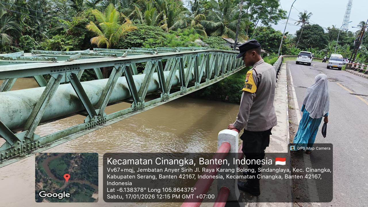 -POLRES CILEGON–Polda Banten. Babinkamtibmas Polsek Cinangka, meningkatkan pemantauan terhadap aliran sungai dan debit air di wilayahnya, terutama di sekitar Sungai Cidanau, Kecamatan Cinangka, Kab Serang. Hal ini dilakukan sebagai langkah antisipasi terhadap potensi banjir, terutama di musim penghujan. Sabtu.(17-01-2026).