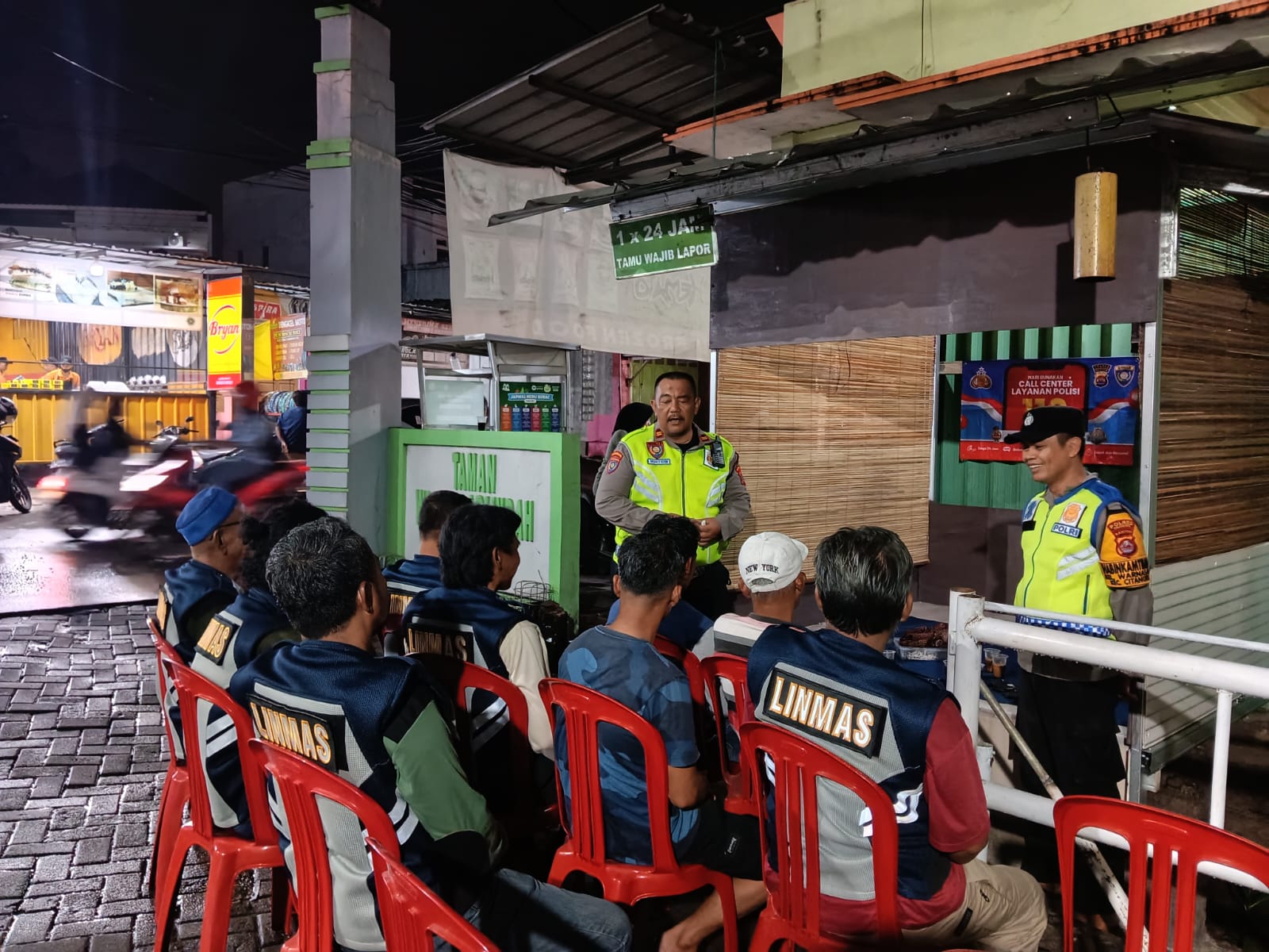 Tanpa mengenal waktu siang atau malam, IPTU Muhyidin memberikan pengarahan tegas sekaligus motivasi kepada warga, tokoh masyarakat, serta pengurus RT dan RW yang aktif menjaga keamanan lingkungan.