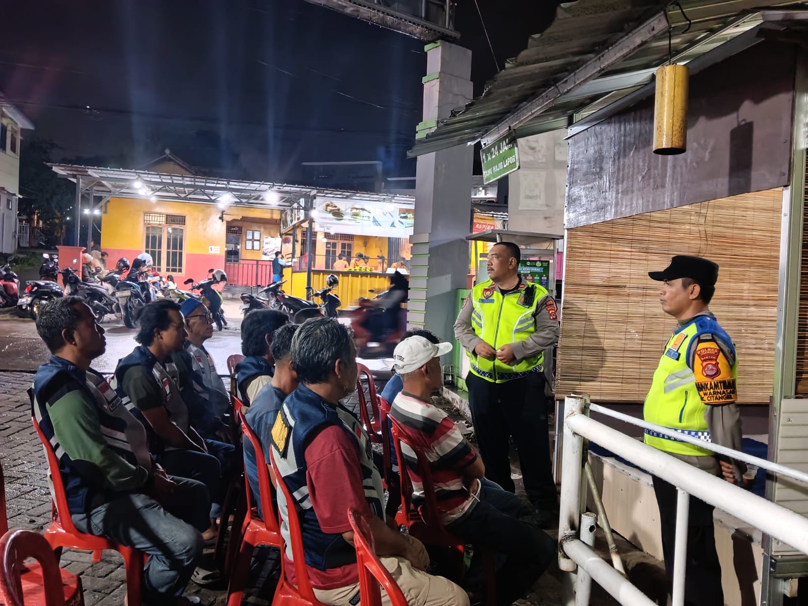 Tanpa mengenal waktu siang atau malam, IPTU Muhyidin memberikan pengarahan tegas sekaligus motivasi kepada warga, tokoh masyarakat, serta pengurus RT dan RW yang aktif menjaga keamanan lingkungan.