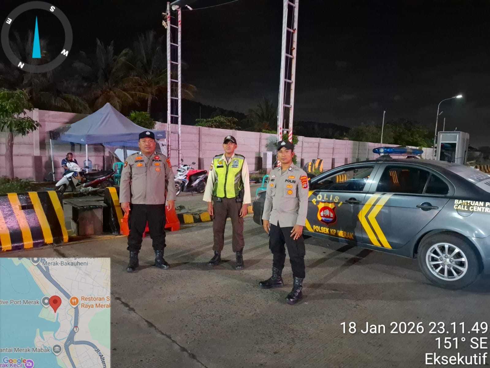 Cilegon - Personil Polsek Kskp Merak Polres Cilegon melaksanakan patroli di kawasan pelabuhan merak memberikan rasa aman dan damai, Senin (19/01/2026)