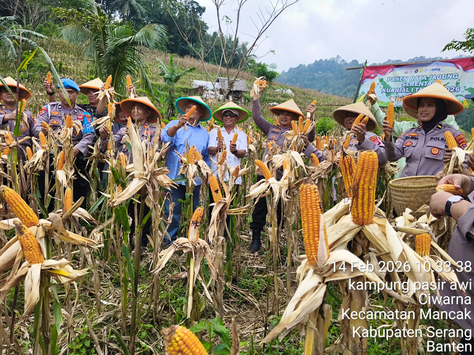 Cilegon - Polres Cilegon Polda Banten laksanakan panen raya jagung serentak Kuartal I Tahun 2026 yang dilaksanakan di wilkum Polsek Mancak tepatnya di Kp Pasir Awi Rt 007/004, Desa Ciwarna, Kec Mancak, Kab Serang. Sabtu (14/02/2026).