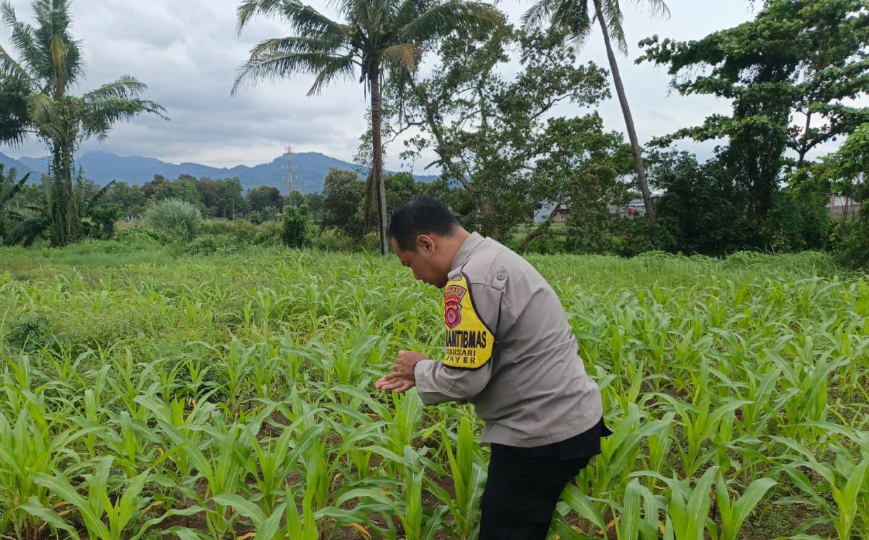 Bhabinkamtibmas Polsek Anyar Cek Monitor Pertumbuhan Jagung