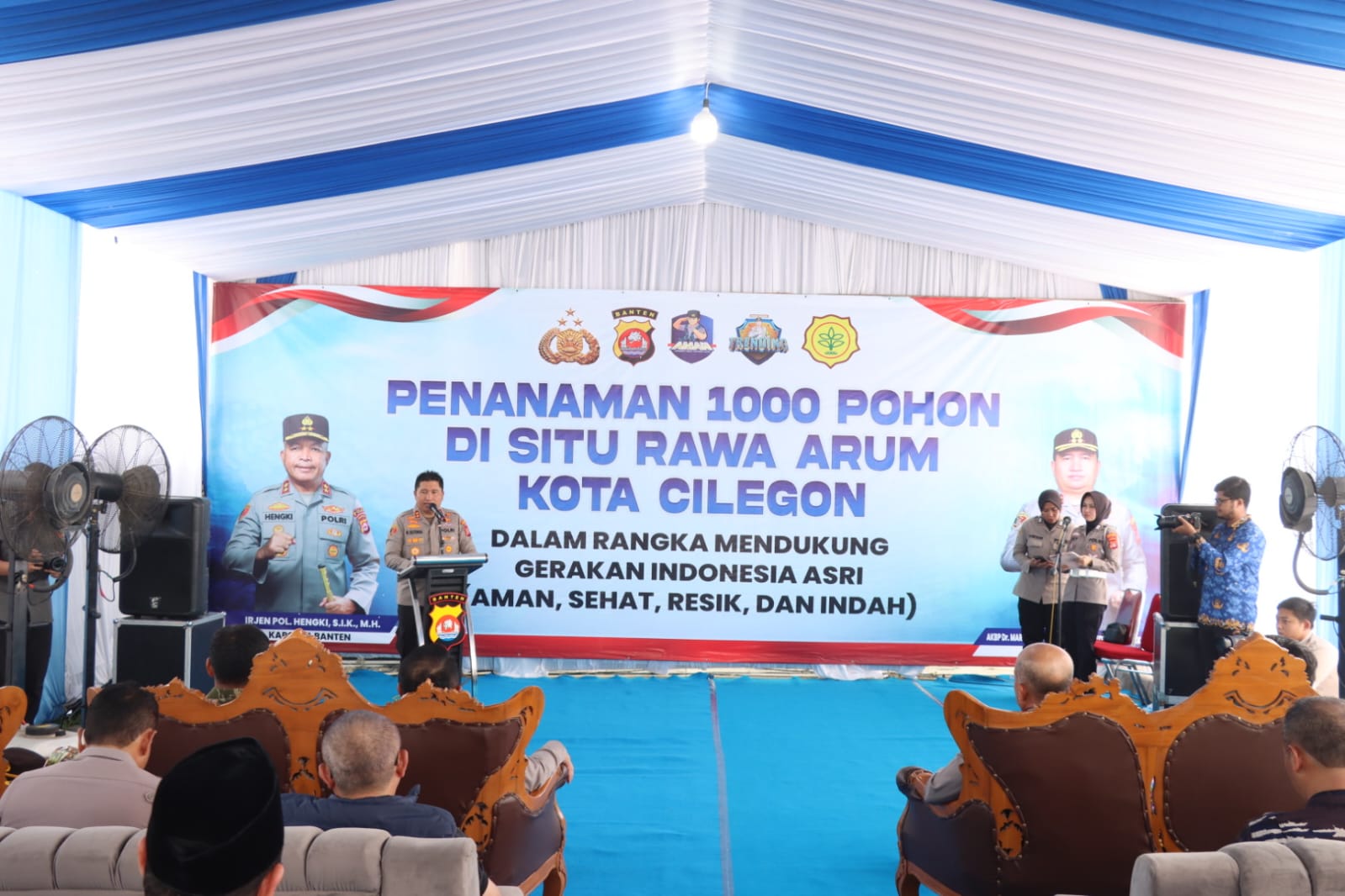 Cilegon – Upaya nyata menjaga kelestarian lingkungan terus digencarkan. Polda Banten bersama unsur TNI, pemerintah daerah, dan masyarakat menggelar kegiatan penanaman 1.000 pohon di kawasan Situ Rawa Arum, Kelurahan Rawa Arum, Kecamatan Grogol, Kota Cilegon, Jumat (17/04/2026).