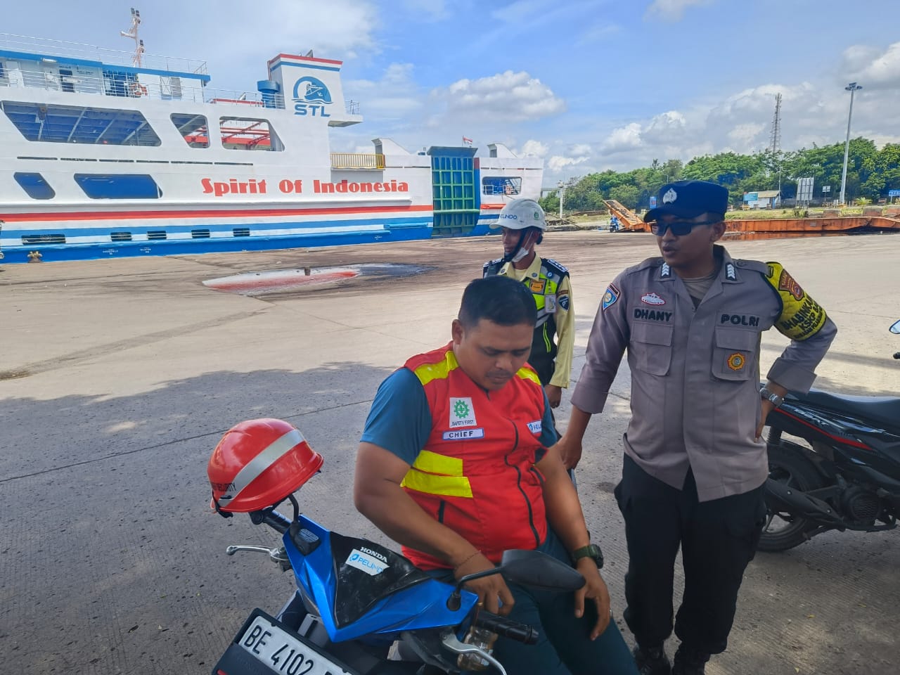 Personil Bhabinkamtibmas Polsek KP Banten Berbincang dengan Karyawan Pelabuhan