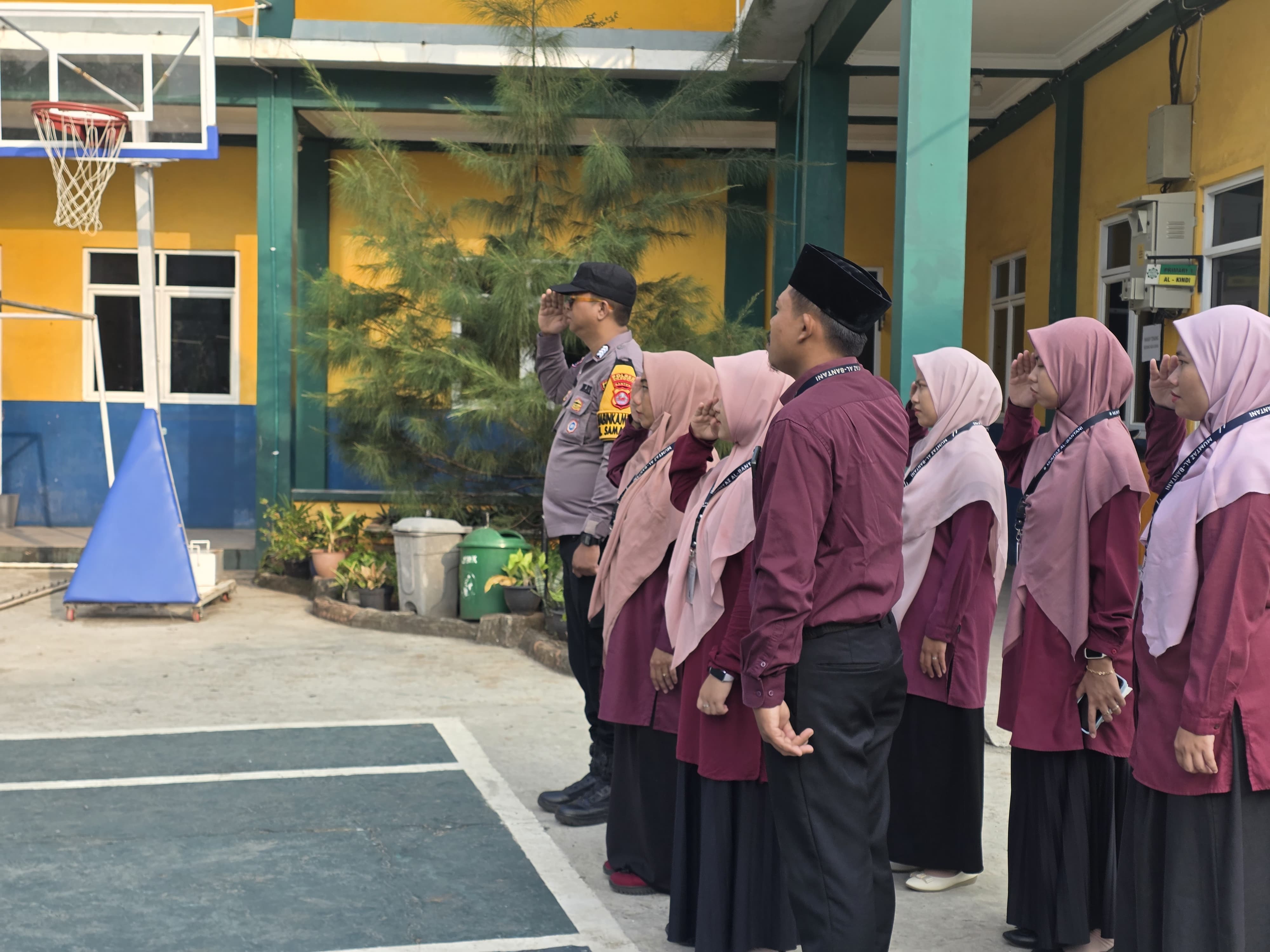 Cilegon - Bhabinkamtibmas Kelurahan Samangraya Polsek Ciwandan Polres Cilegon Polda Banten BRIPKA Marisco Menyambangi Sekolah Dan Dewan Guru Sekolah-Sekolah Yang Ada Didaerah binaannya, Senin (20/04/2026).