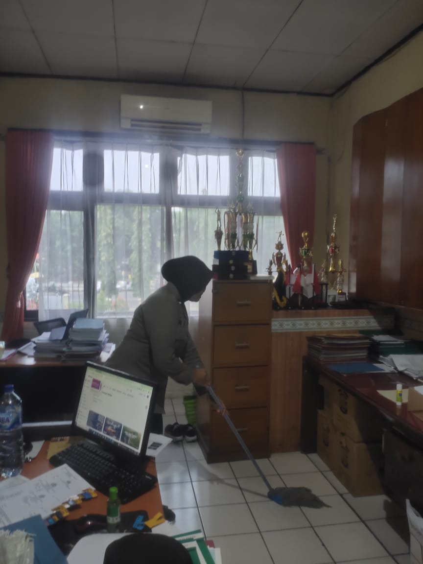 anggota SDM Polres Cilegon, dalam Pelaksanaan menjaga keebersihan ruangan kerja setiap saat.