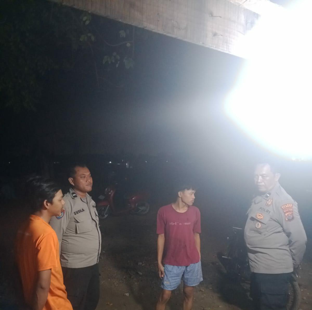 Aipda Aris & Bripka Susilo Bhabinkamtibmas Laksanakan Patroli Kryd Di Malam Hari Sampaikan Himbauan Kamtibmas & Sosialisasi Call Center 110