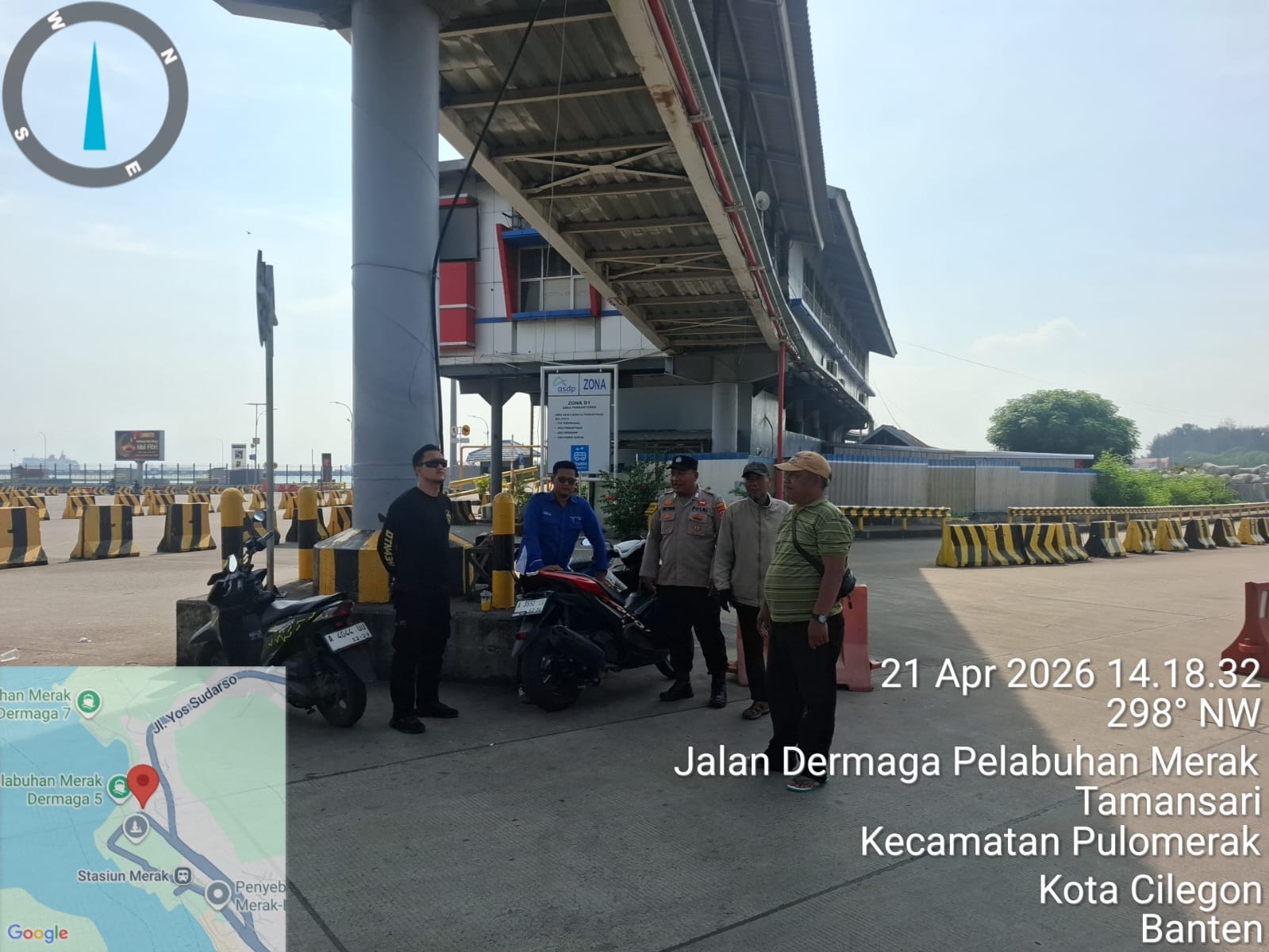 Cilegon - Personel Polsek Kskp Merak Polres Cilegon Polda Banten melaksanakan sambang dan patroli kawasan pelabuhan merak dalam rangka menjaga Harkamtibmas di Kawasan Pelabuhan Merak, Selasa (21/04/2026).