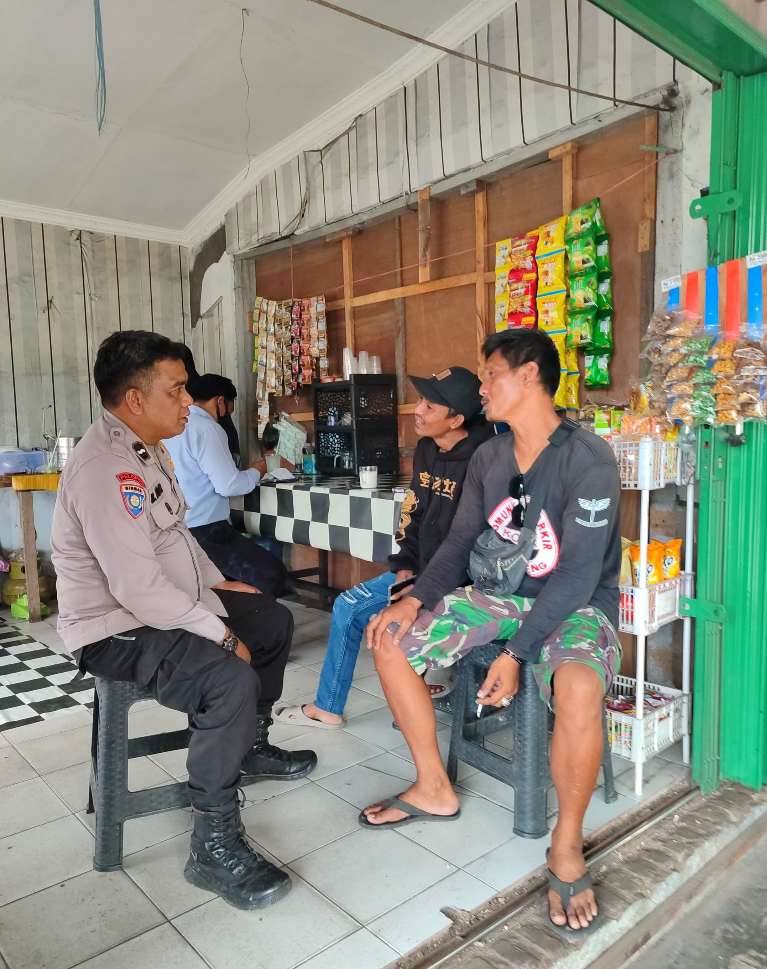 Cilegon - Personil Bhabinkamtibmas Polsek Ciwandan Polres Cilegon Polda Banten Menyampaikan Pesan Kamtibmas dan mengajak masyarakat terus aktif dalam kepedulian terhadap Pemeliharaan keamanan lingkungan di daerah Binaanya, Selasa (21/04/2026).