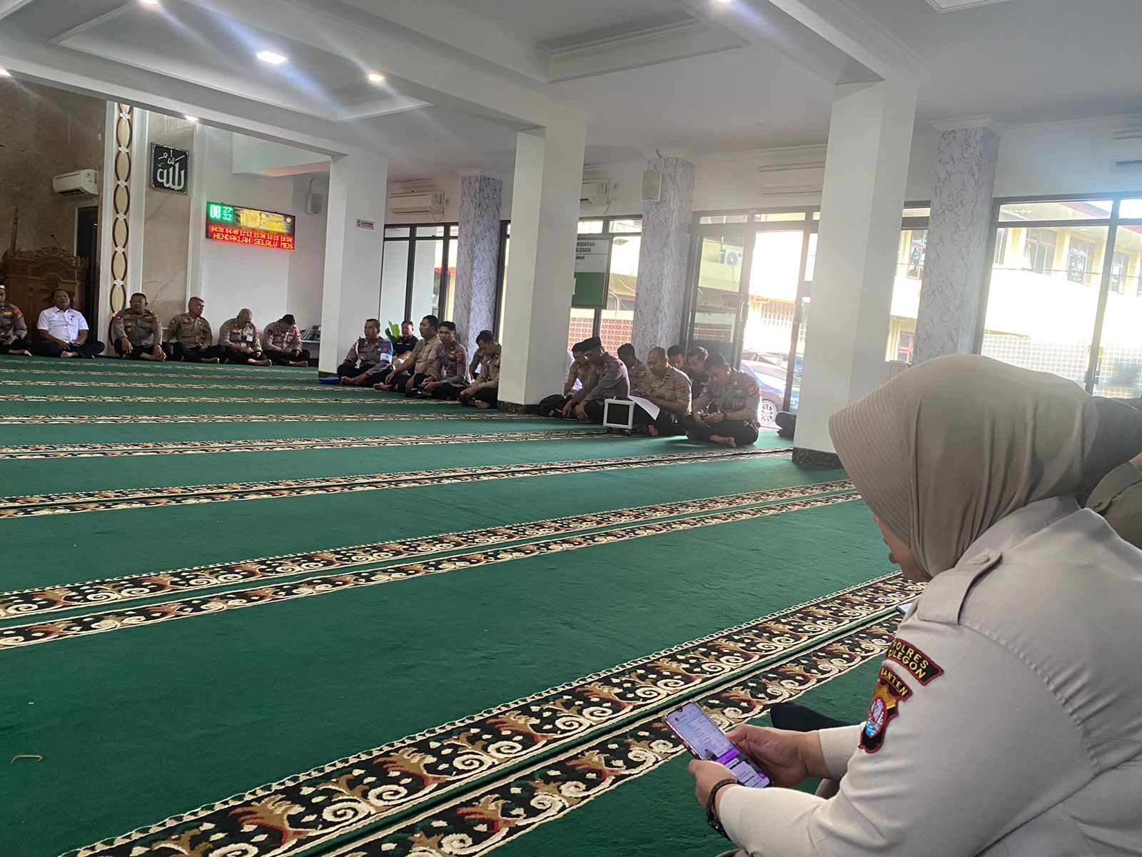 Personel Seksi Keuangan (Sikeu) Polres Cilegon melaksanakan kegiatan pembinaan rohani dan mental (Binrohtal) di Masjid Al Hidayah Polres Cilegon.