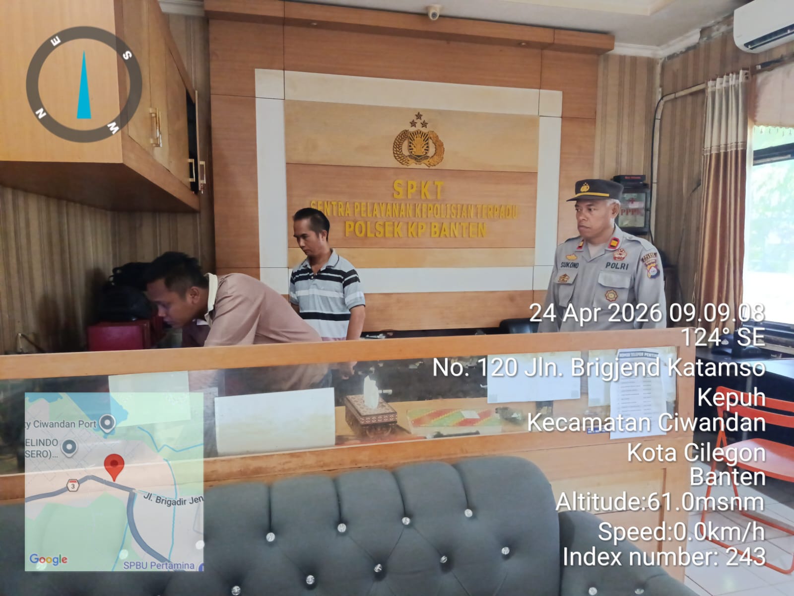 Cilegon.  Personel piket jaga Polsek Kskp Banten Polres Cilegon Polda Banten melaksanakan Pengamanan Mako Polsek, Jumat (24/04).