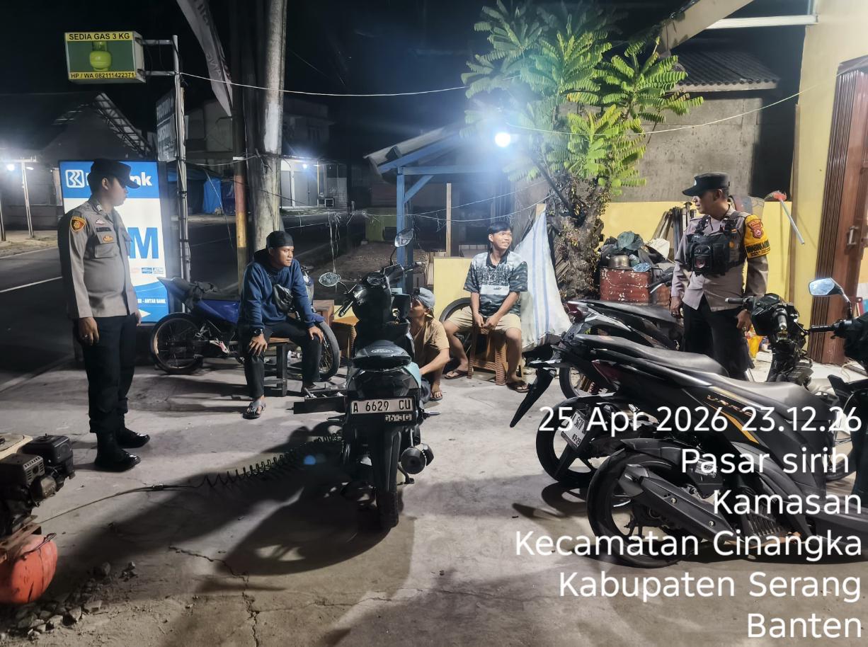 *Cilegon* – Dalam Rangka Pencegahan Kejahatan Jalanan dan Memelihara situasi keamanan dan menjaga serta memberikan rasa aman dan nyaman di masyarakat,Salah satu upaya untuk mewujudkan hal tersebut sebagaimana yang dilakukan oleh Personil Polsek Cinangka Polres Cilegon Polda Banten melaksanakan giat patroli blue light malam hari hingga menjelang pagi, Minggu (26/04/2026).