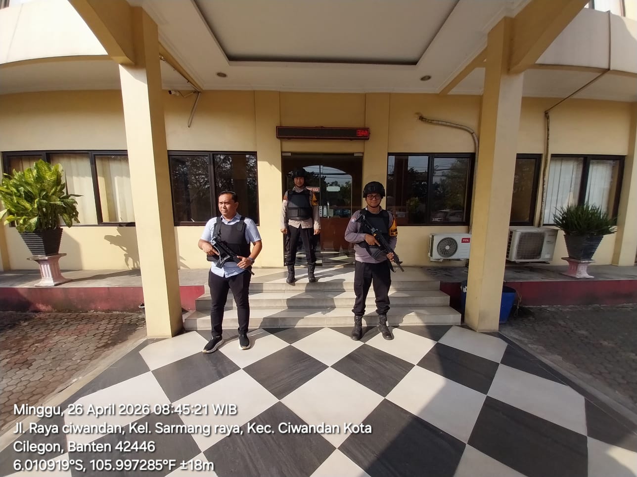 Cilegon - Dalam Kesiap Siagaan dan Memperketat Penjagaan Mako (Markas Komando), Personil Polsek Ciwandan Polres Cilegon Polda Banten melaksanakan Sistem Pengamanan Markas Komando (Sispam Mako), Minggu (26/04/2026).