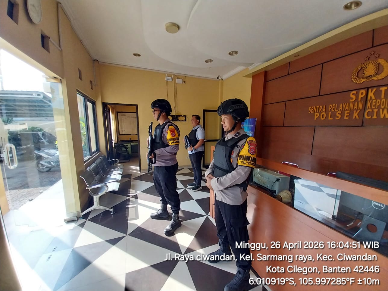 Cilegon - Dalam Kesiap Siagaan dan Memperketat Penjagaan Mako (Markas Komando), Personil Polsek Ciwandan Polres Cilegon Polda Banten melaksanakan Sistem Pengamanan Markas Komando (Sispam Mako), Minggu (26/04/2026).