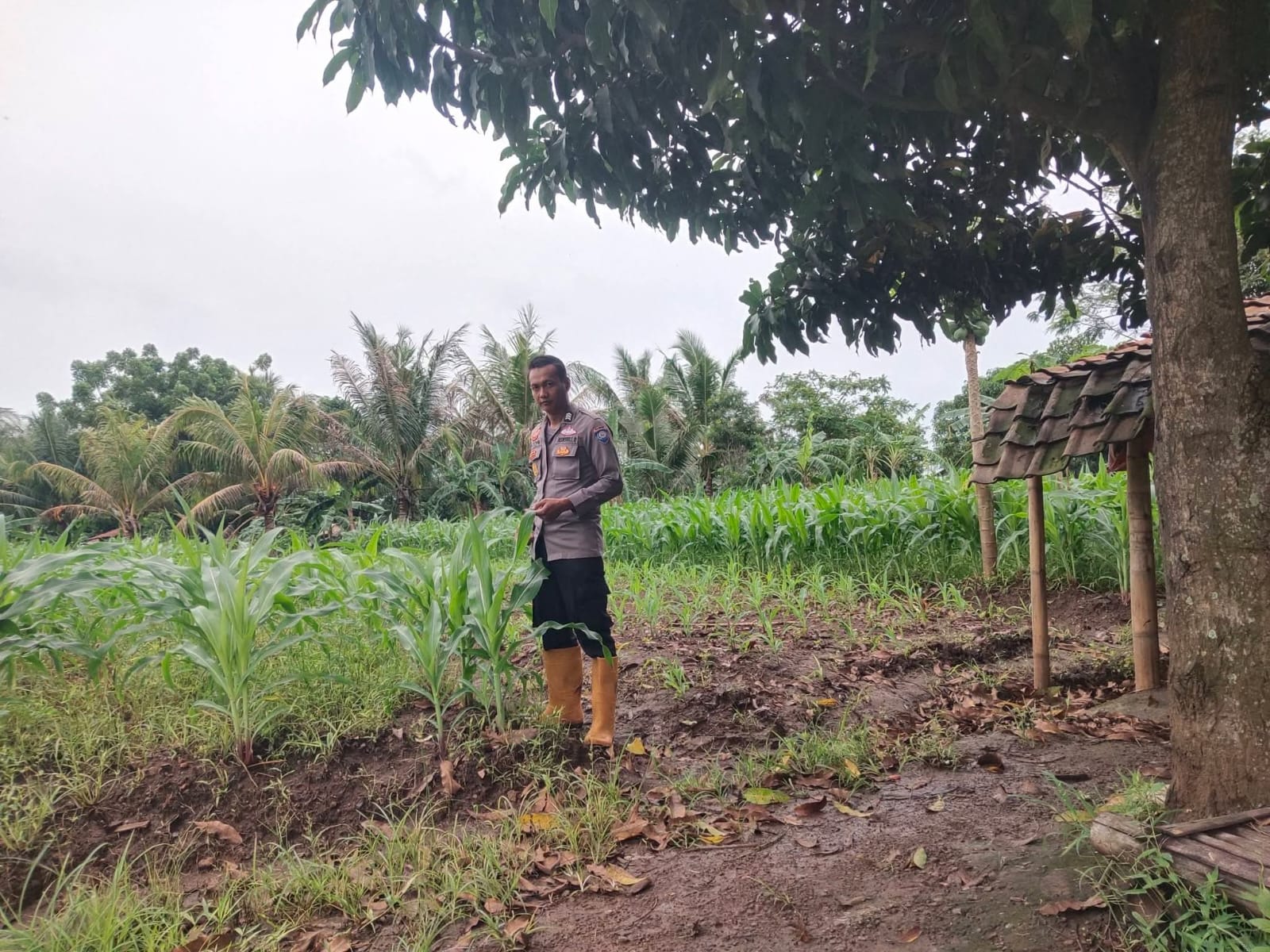 Pantau lahan jagung pok tani sinarjaya kecamatan.puloampel Desa alira oleh Bhabinkamtibmas Polsek Puloampel